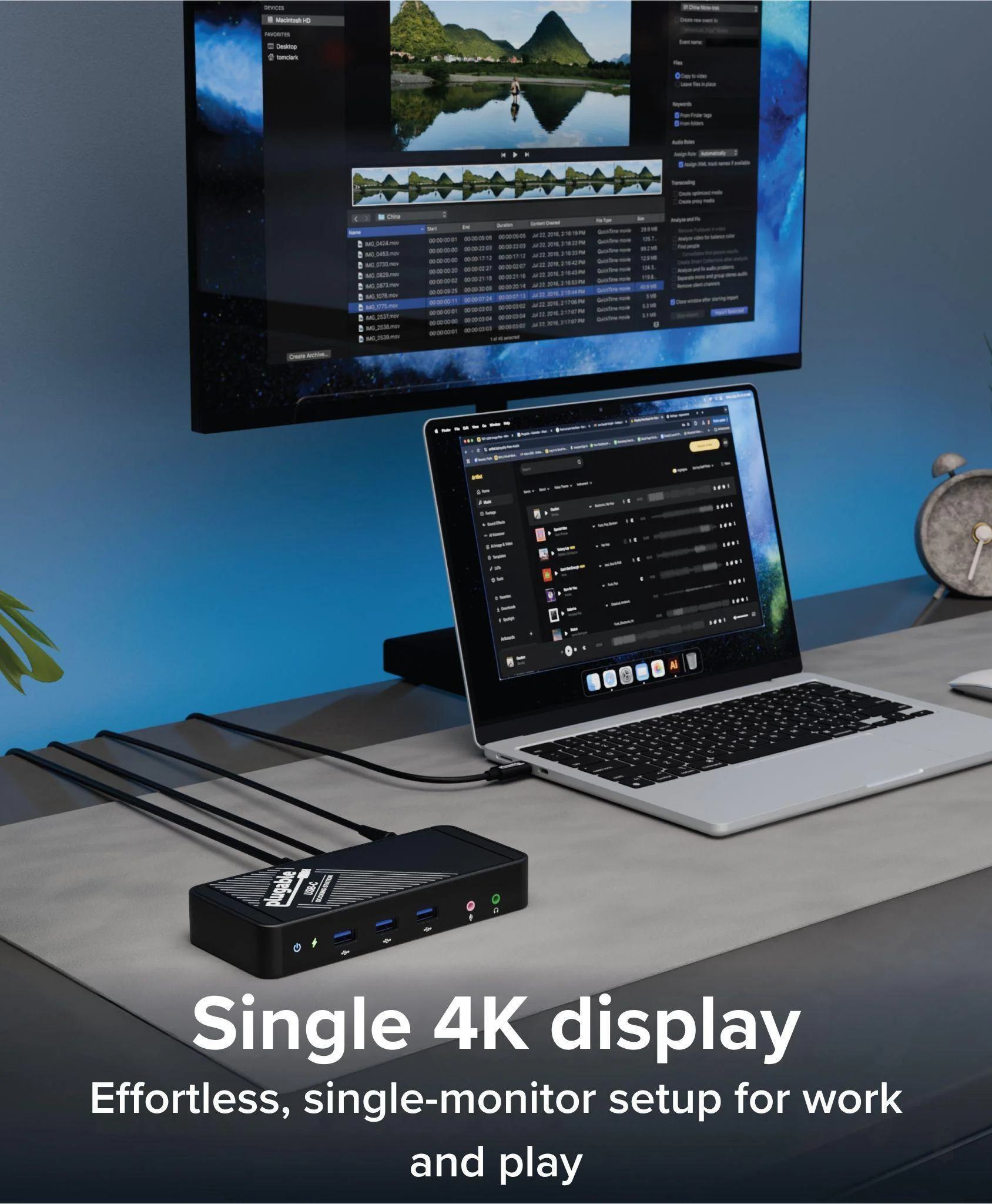 The UD-CA1A is designed for a seamless setup experience. It offers driverless, plug-and-play functionality, meaning no additional software or drivers are needed to begin using it. Simply connect the dock to a compatible USB-C port on your device, and its full range of features becomes immediately accessible, including HDMI video output, USB ports, Ethernet, and audio connections. Its compact vertical stand, which can also be removed for horizontal use, provides flexible placement options to suit your workspace.