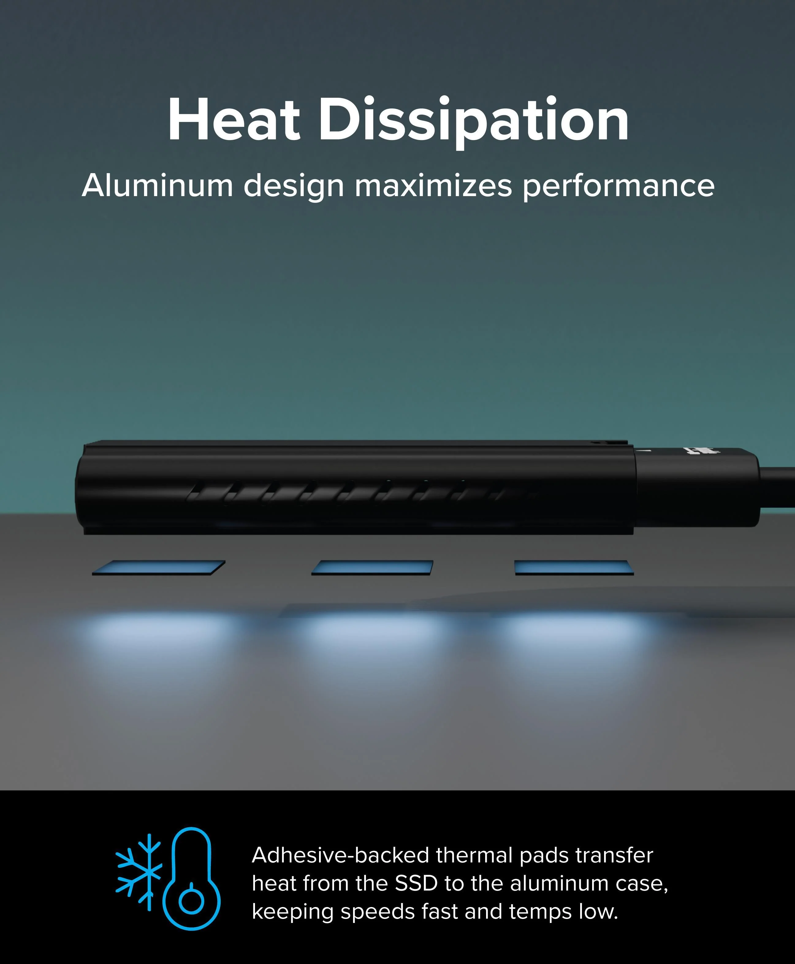 With a tool-less installation process and adjustable SSD retention pin, this m.2 NVMe SSD enclosure supports 30mm, 42mm, 60mm, and 80mm M.2 NVMe drives. The rugged aluminum shell features low-profile cooling fins and includes thermal pads to help prevent performance drops due to thermal throttling during large file transfers - especially helpful with older or high-performance SSDs.